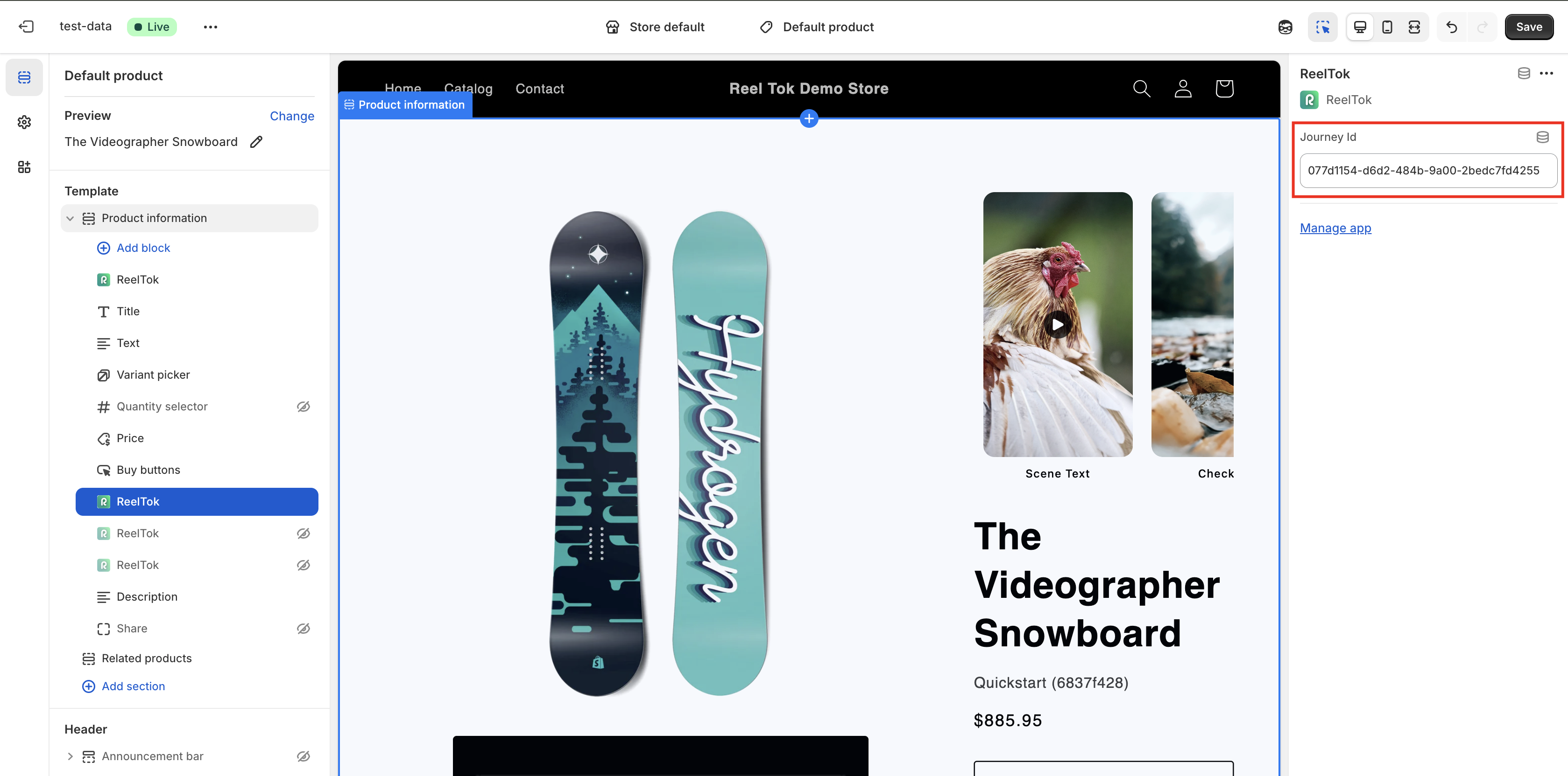 Open the ReelTok App and copy the Journey ID for the video you want to show.