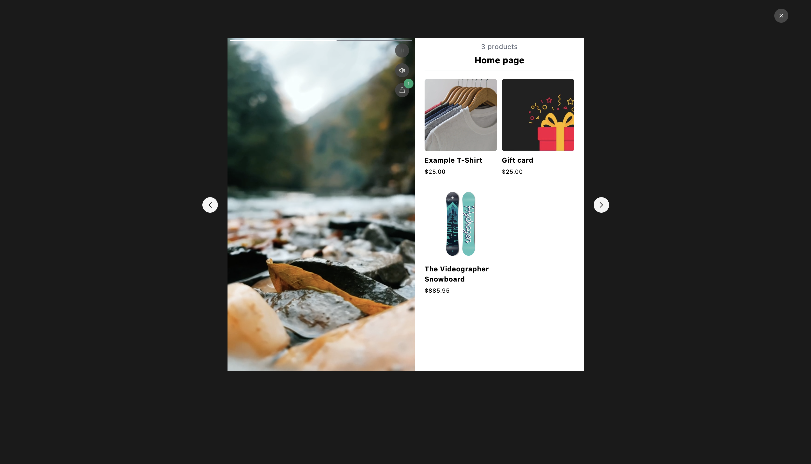 View Products: While the video plays, the attached products are displayed clearly within the popup player. Customers can scroll through multiple items or view an entire collection without stopping the video.