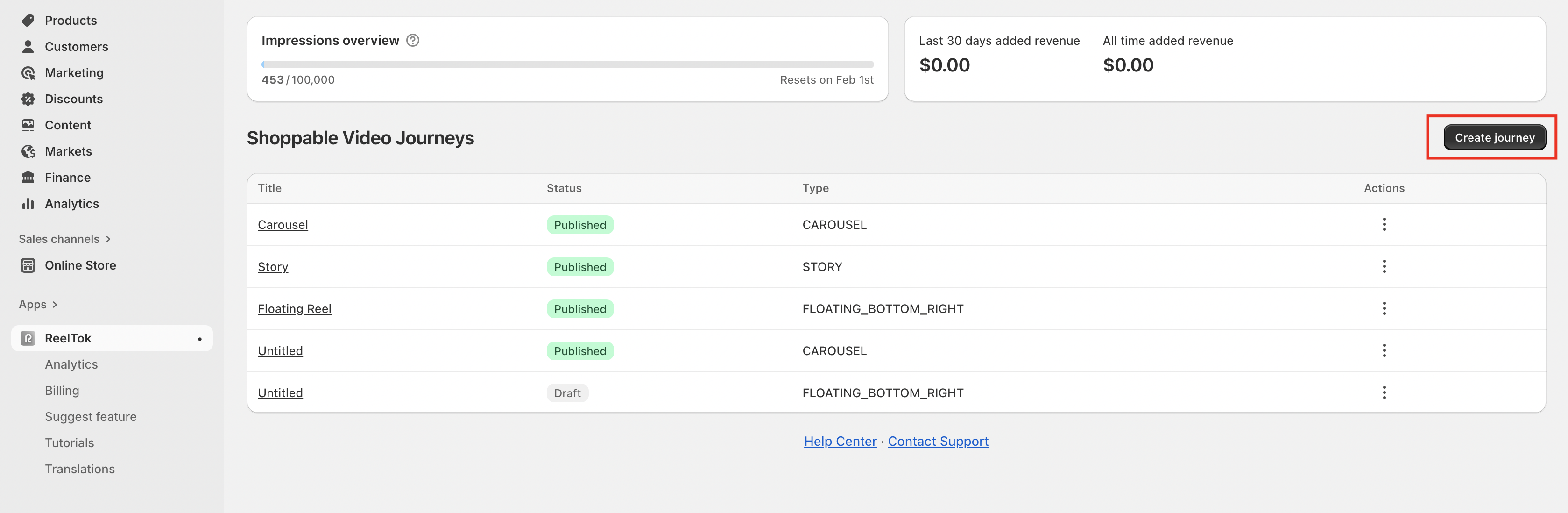 From your ReelTok dashboard, click the black Create journey button located in the top right corner of the screen.