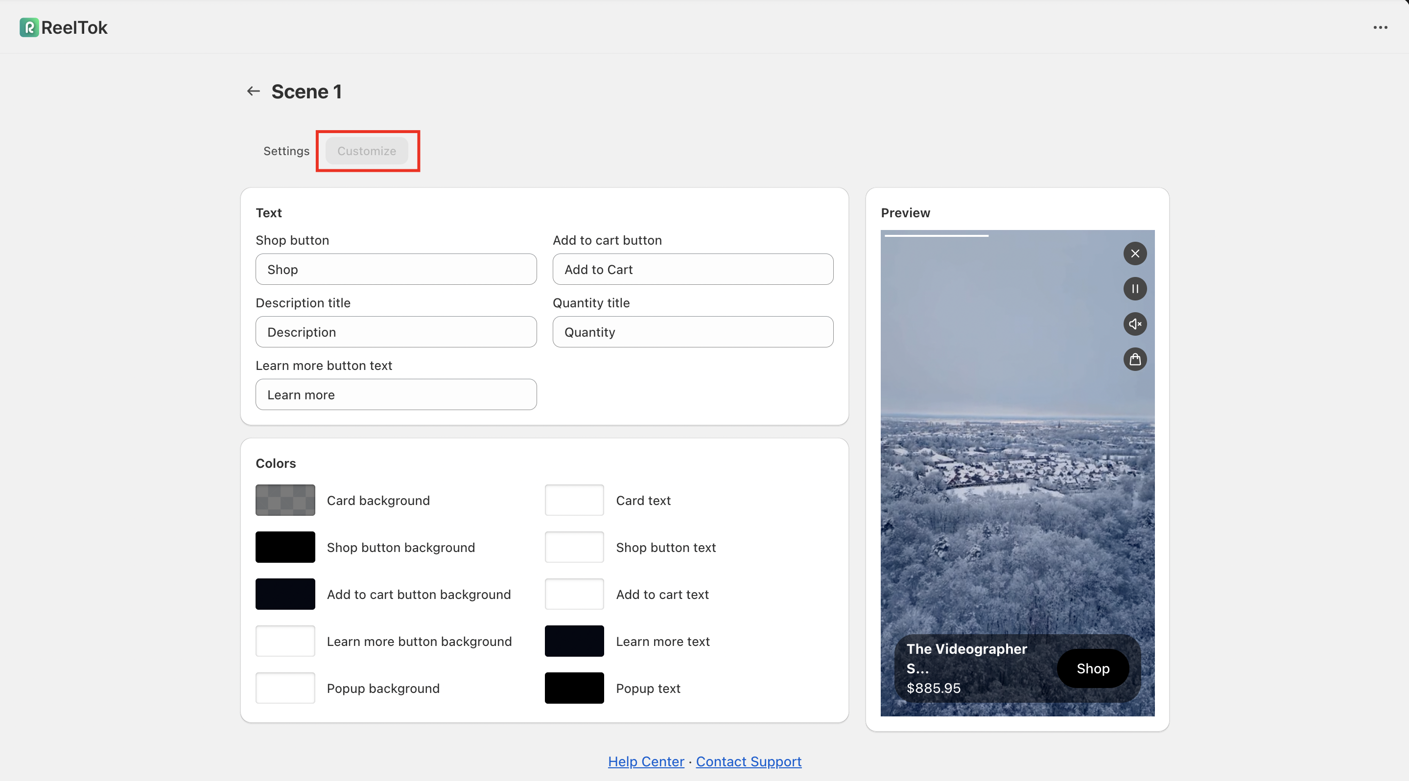 After saving your scene, look at the tabs at the top of the page. Switch from "Setup" to Customize. Here you can adjust the look of the widget to match your brand: