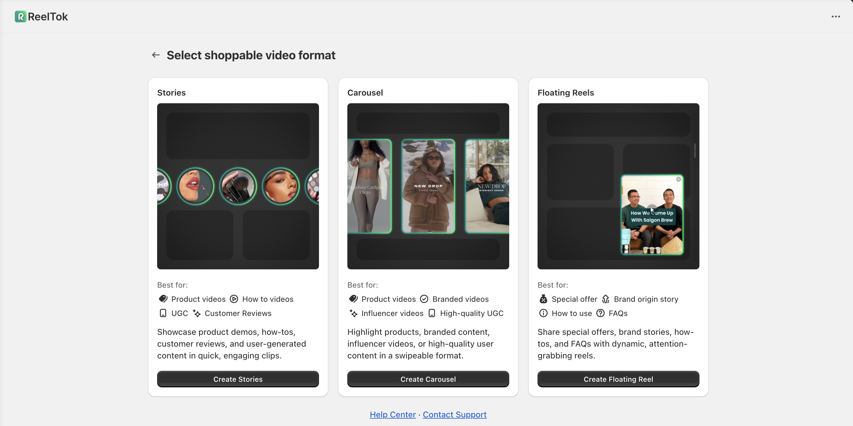 Floating Reels: A sticky widget for announcements. Click the Create button under the format you want to use.