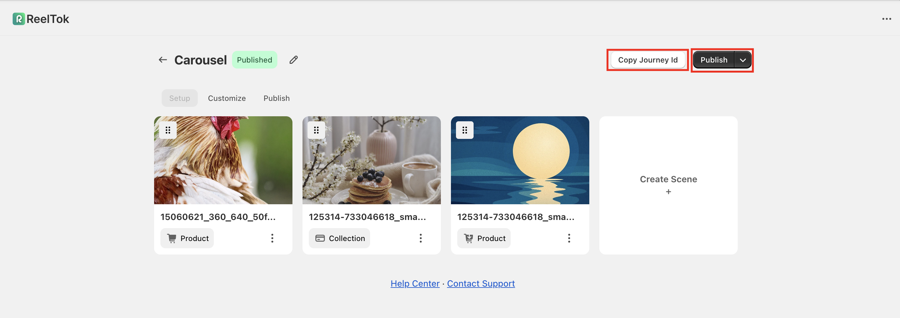 Crucial Step: Click the Copy Journey ID button (located next to the Publish button). You will need to paste this ID into the ReelTok App Block inside your Shopify Theme Editor to make the video appear on your site.